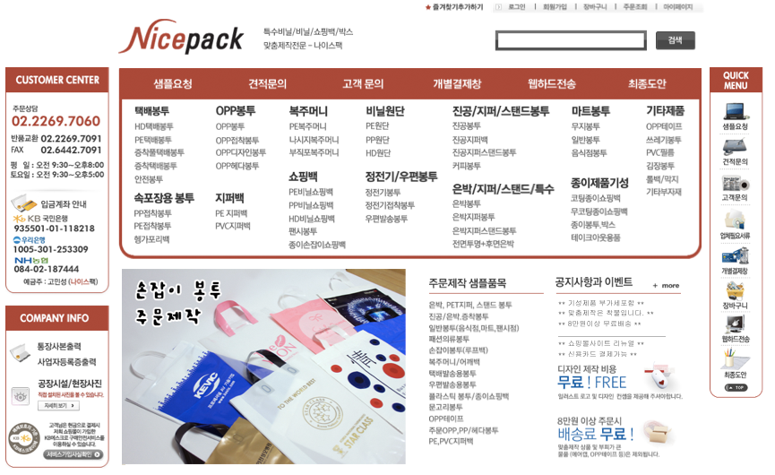 기업소개와 쇼핑몰의 두가지 기능을 가진 쇼핑몰